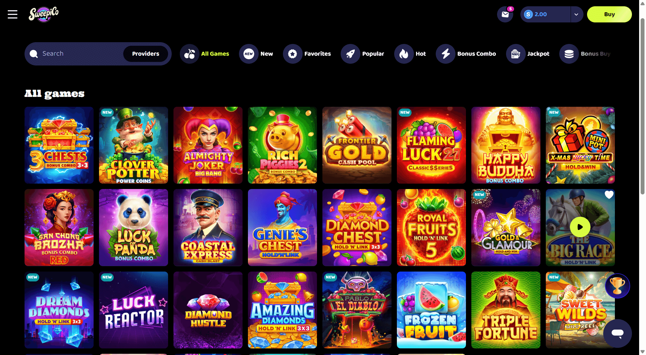 From the moment I landed on sweepico.com, I could tell the design team cared about visual polish, with clean branding and fast-loading lobby tiles. Game discovery is smooth thanks to filters for providers, volatility, and popular collections, which makes it easy to jump between free money slots style titles and more feature-heavy games.