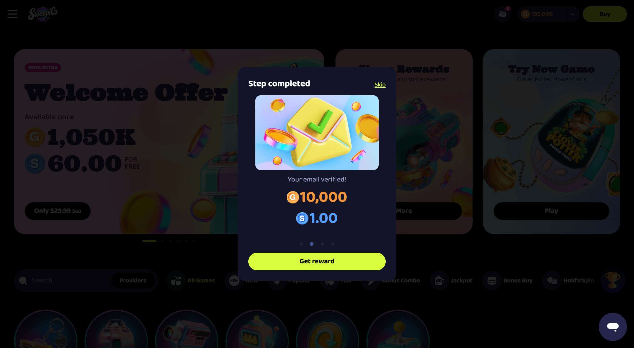 - Sign-up rewards: Free Gold Coins plus bonus Sweeps Coins after registration and verification, no code required.