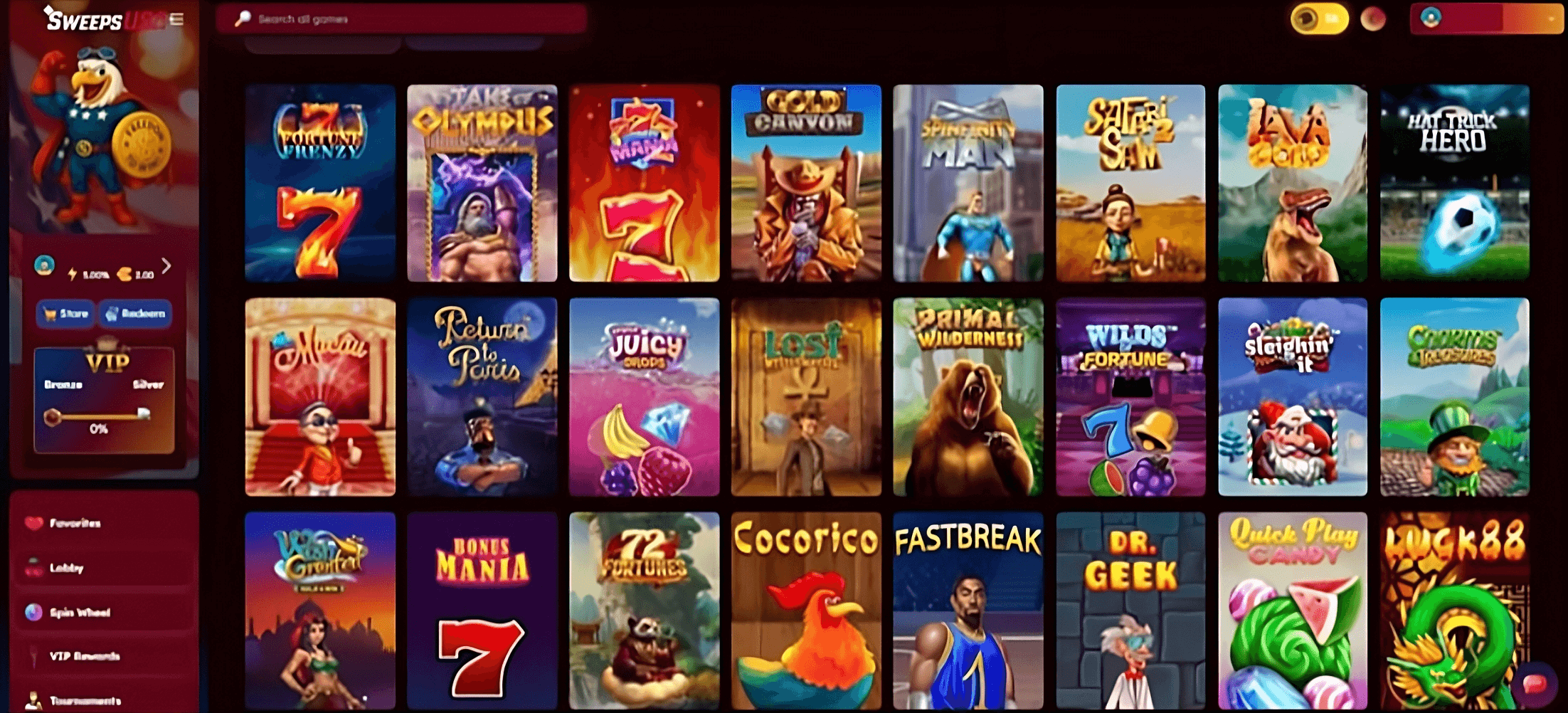 The games lobby is easily the biggest strength of SweepsUSA, and as someone who mainly spins slots, I was honestly impressed by how many distinct titles I could scroll through without seeing the same recycled designs.