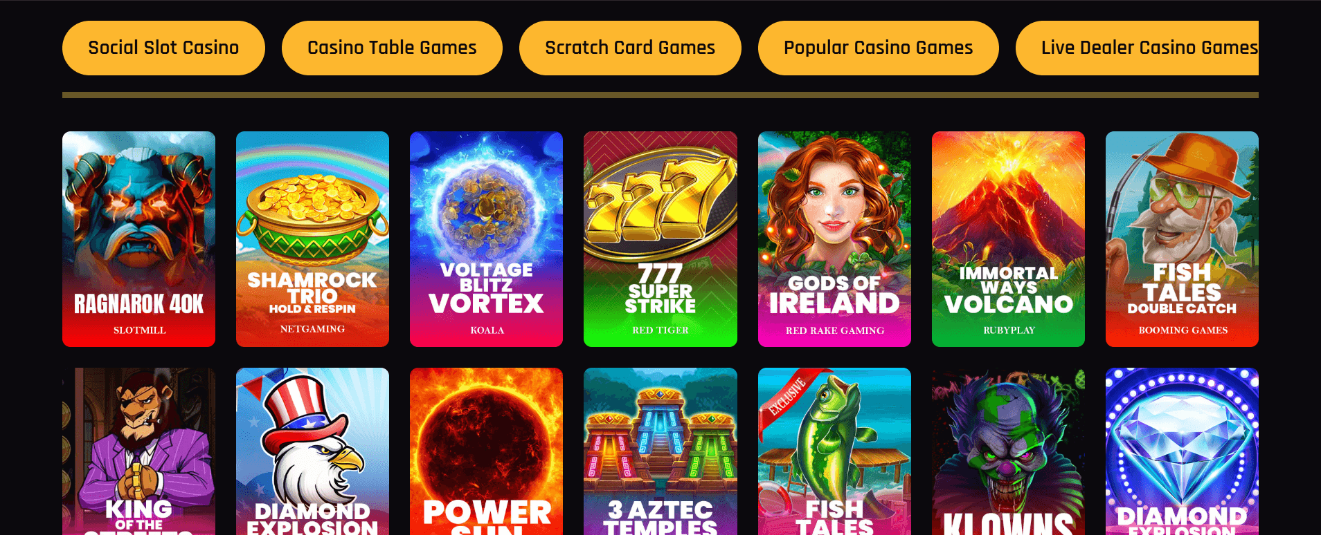 If volume and variety matter, The Money Factory is a heavy hitter with over 1,000 casino-style games, including slots, table games, and instant wins. Top providers include Pragmatic Play, Hacksaw Gaming, BGaming, and Evoplay. The lobby offers filtering for features like Megaways, jackpots, instant win scratch cards, and classic table games (blackjack, roulette, baccarat, and poker). The live casino section features around 20 live dealer titles (including those from Iconic 21), and free play is always available using Gold Coins