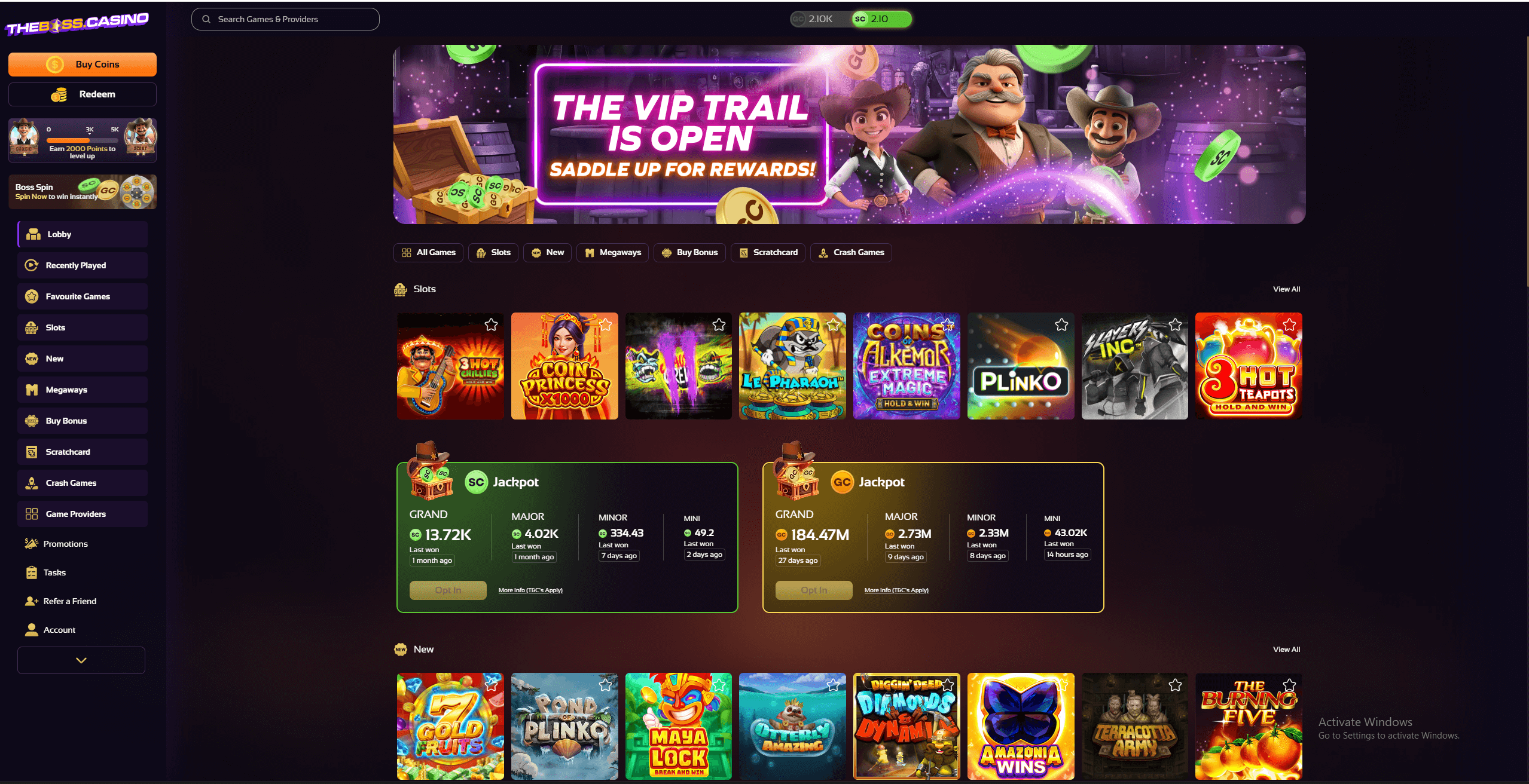 The Boss Casino is a newer sweepstakes-style platform offering a light and accessible gaming experience built around slots, megaways, scratchcards, and crash-style games. While the game selection may not compete with larger sweepstakes casinos, its smooth interface and low-friction registration process make it appealing to players who want quick access to sweeps gameplay without jumping through too many hoops.