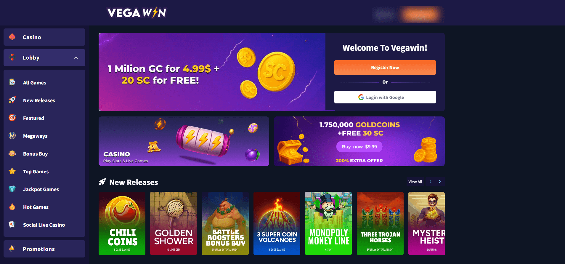 VEGAWIN SWEEPSTAKES CASINO: BIG GAME ENERGY MEETS FRESH PLATFORM POTENTIAL