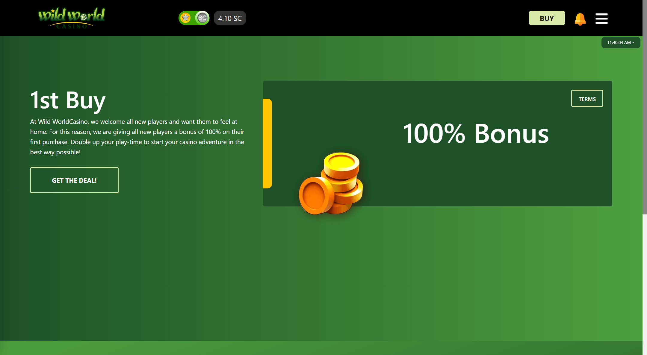 Wild World’s headline welcome offer is a modest bundle of 3 free Sweepstakes Coins and 10,000 Gold Coins for new players who create and verify an account, and I used this to explore a decent slice of the lobby without spending anything. The structure is straightforward: Sweeps Coins come with a simple 1x playthrough requirement before you can redeem prizes, Gold Coins are strictly for entertainment play, and I did not run into buried rollover traps or confusing expiry clauses in the bonus terms. There are no huge headline multipliers like you see at more aggressive social casinos, so if you chase maximum value, you may want to compare this with places like Sweep Jungle Casino that push much bigger starter bundles.