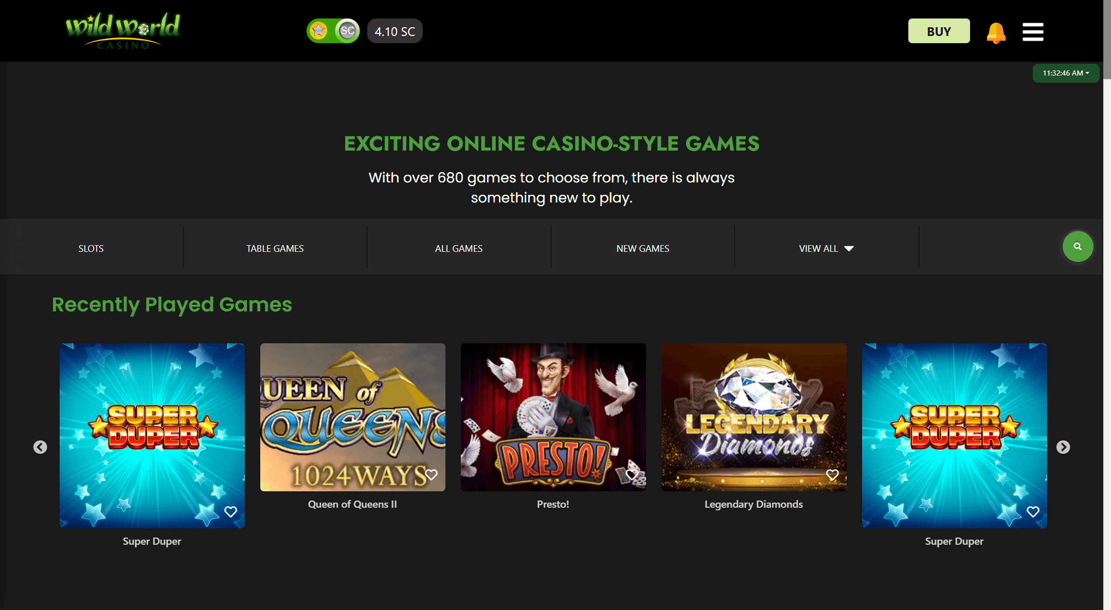 The game lobby at Wild World leans heavily on slots and classic RNG titles, and while I appreciated having a few hundred games to sample, the overall catalog feels behind the curve compared to the giants of the sweeps world. During my sessions, I found a mix of generic slots, some video poker and table-style games, but no live dealer section and no sportsbook, so if you want in-depth live games or betting markets, you are better off heading to a more complete platform like Sweet Sweeps Casino instead.