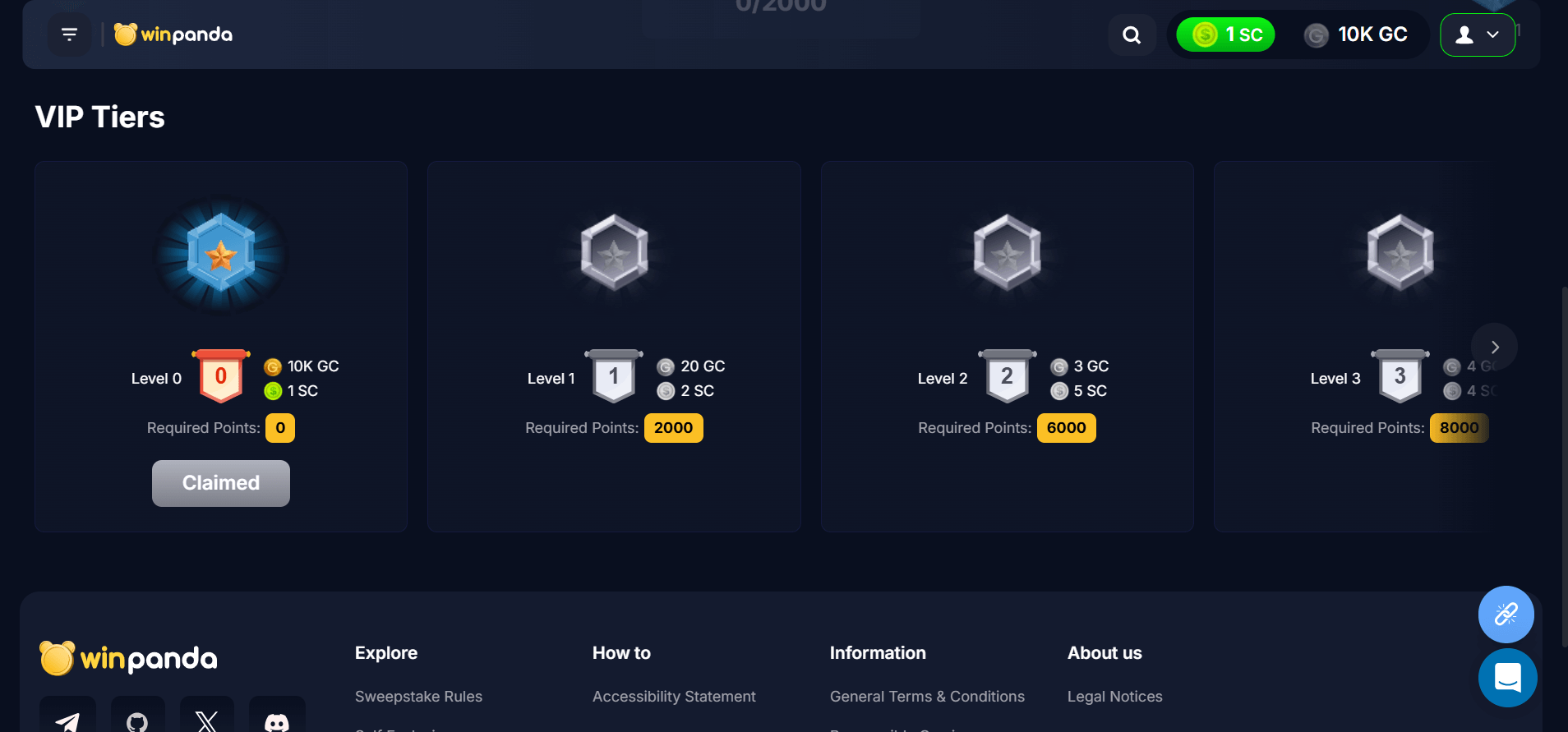 | Level 1 | 2,000 | 20,000 GC | 2 SC |