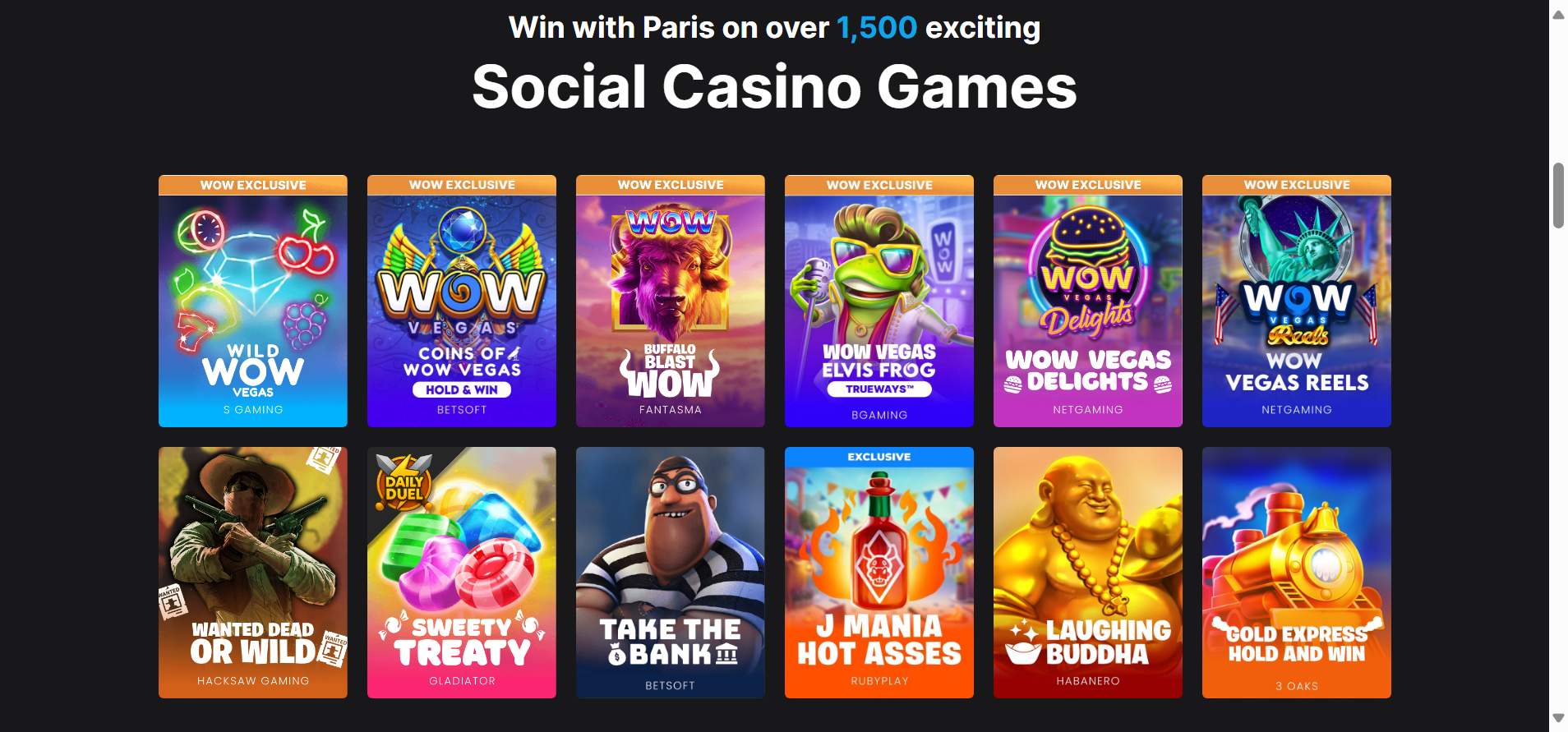 So, what about that game library? It's mouthwatering in scope. With 1,500+ top dollar slots, progressives, Megaways, themed wheels, and even exclusive WOW Originals. For my money, this sweepstakes lineup includes some of the best slots to play online in the gaming space. Brought to life through world-renowed providers such as Hacksaw, Red Tiger, and NetEnt—plus weekly new launches and regular prize boosts, slots have rarely WOWed like this before. Table game fans such as myself, will be happy to see the inclusion of casino staples such as blackjack and roulette. They also have a relatively wide selection of social live games (15 titles), I personally enjoyed the live roulette and crash live. GC play mode means you can demo every title, risk-free.
